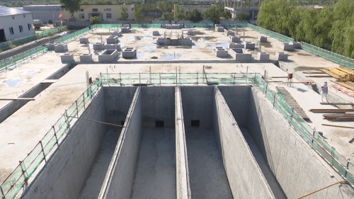 污水處理廠二期項目新建部分土建施工已接近尾聲 開始設備安裝